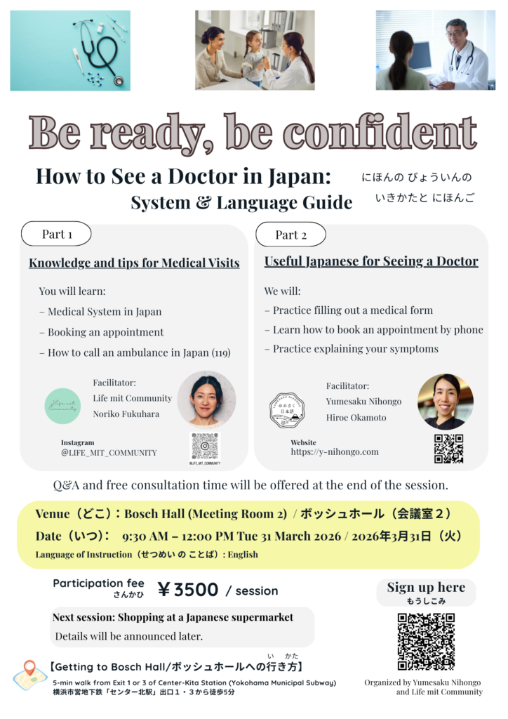 To help make life in Japan feel more secure, Noriko from Life Mit Community and Hiroe from Yumesaku Nihongo are teaming up to bring you this special session.